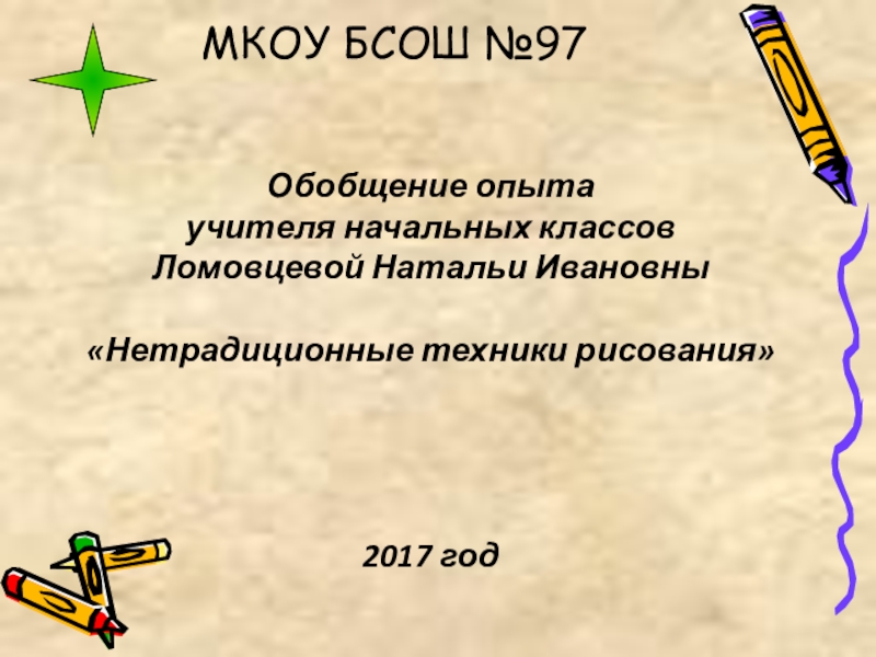 МКОУ БСОШ №97Обобщение опыта учителя начальных классовЛомовцевой Натальи Ивановны«Нетрадиционные техники рисования»2017 год