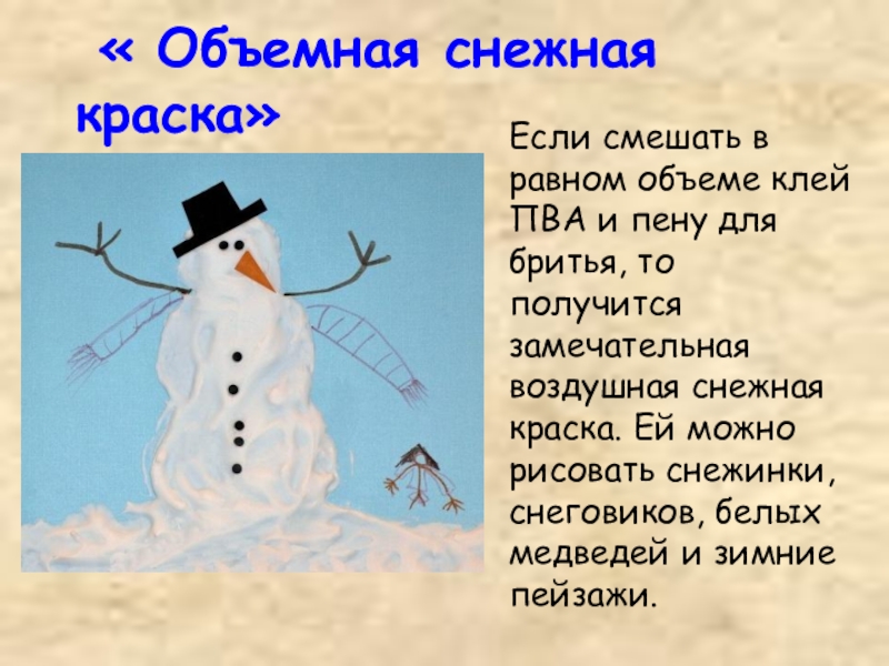 Слайд 13 « Объемная снежная краска»