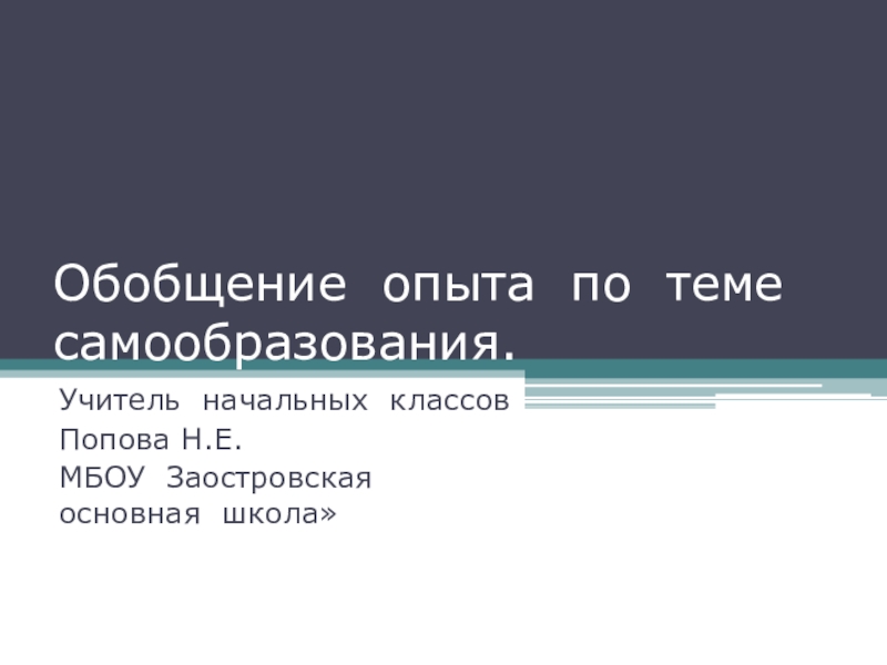 Обобщение опыта по теме  самообразования.Учитель начальных классовПопова Н.Е.МБОУ Заостровская основная школа»