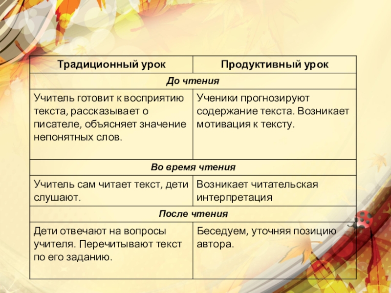 сравнить традиционный урок и урок с применением технологии продуктивного