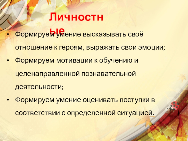 Формируем умение высказывать своё отношение к героям, выражать свои эмоции;