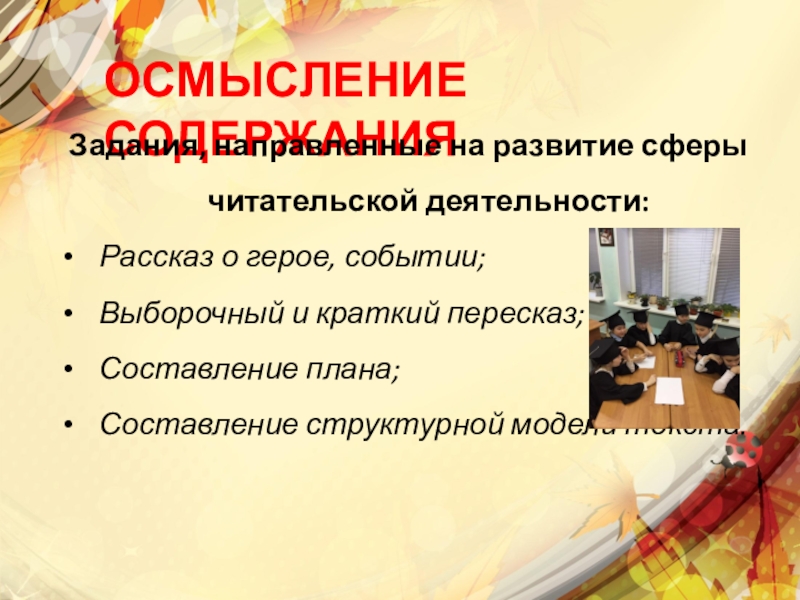 Слайд 20ОСМЫСЛЕНИЕ СОДЕРЖАНИЯ