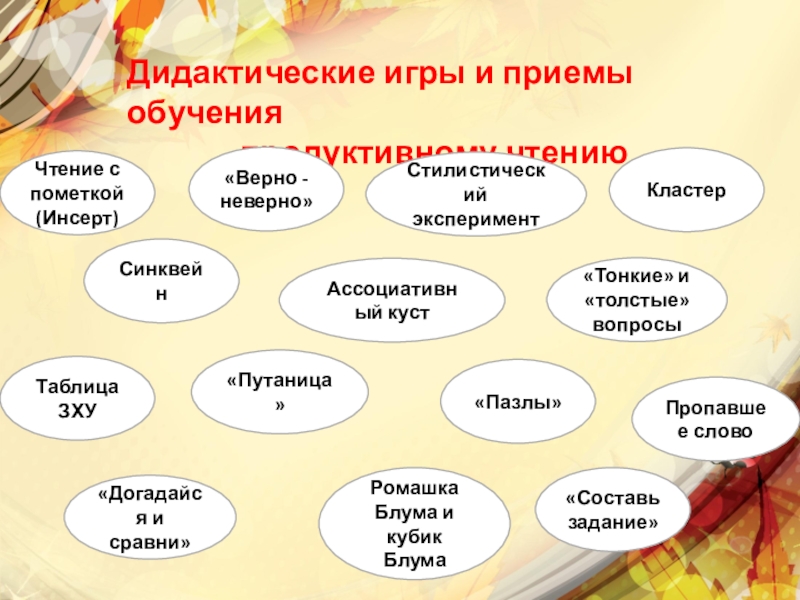 Цель . Познакомить с методами и приемами реализации технологии продуктивного