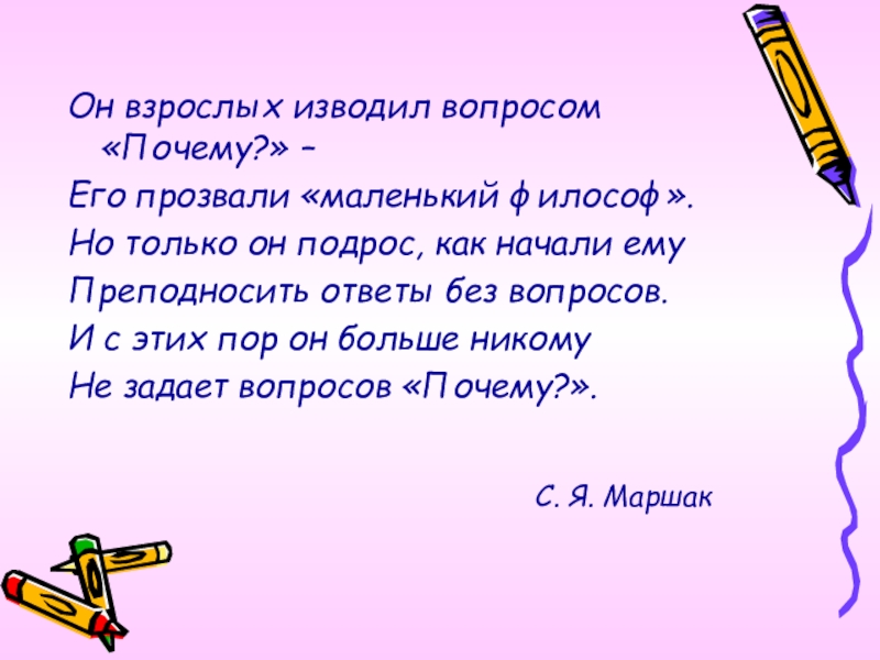Слайд 18Он взрослых изводил вопросом «Почему?» –