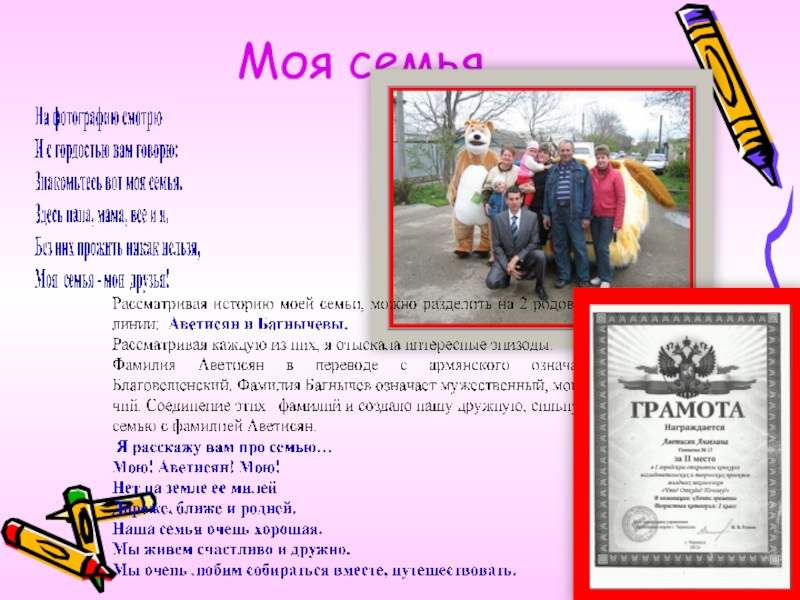 Задачи: исследовать историю возникновения фамилии Аветисян и составить своё «Древо жизни».