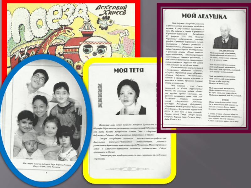 Познакомила со своим дедушкой Киреевым Аскербием Суюновичем -известным ногайским поэтом ,книги которого иллюстрировала его сестра Тамара Аскербиевна Имаева