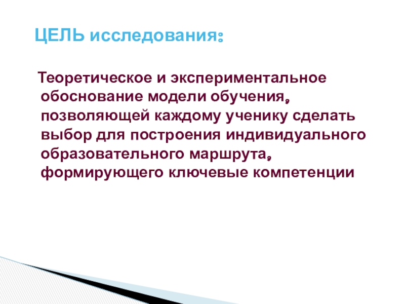 Слайд 10 Теоретическое и экспериментальное обоснование модели обучения, позволяющей каждому ученику сделать