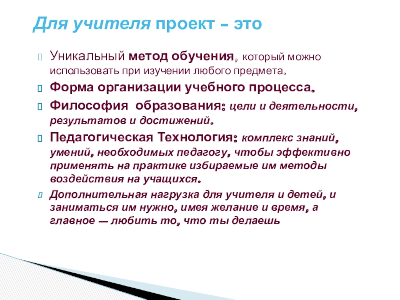 Для учителя проект - это