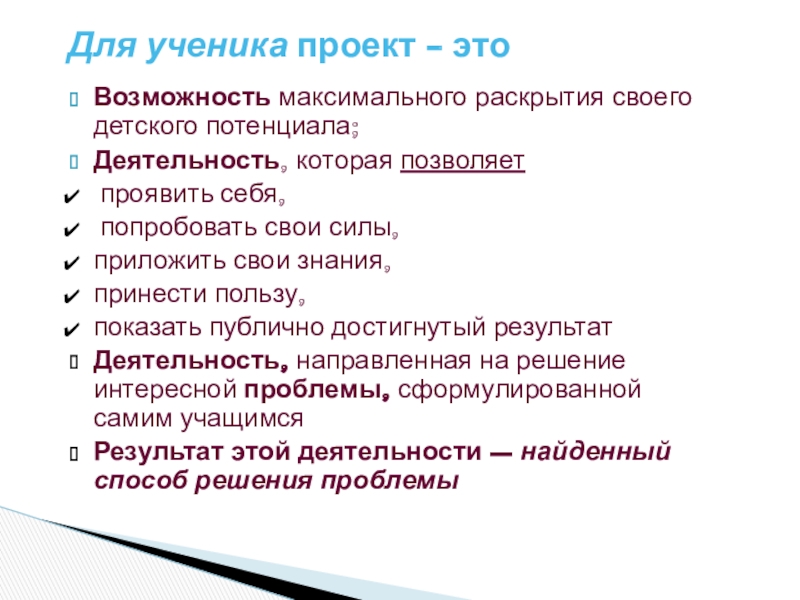 Для ученика проект - это