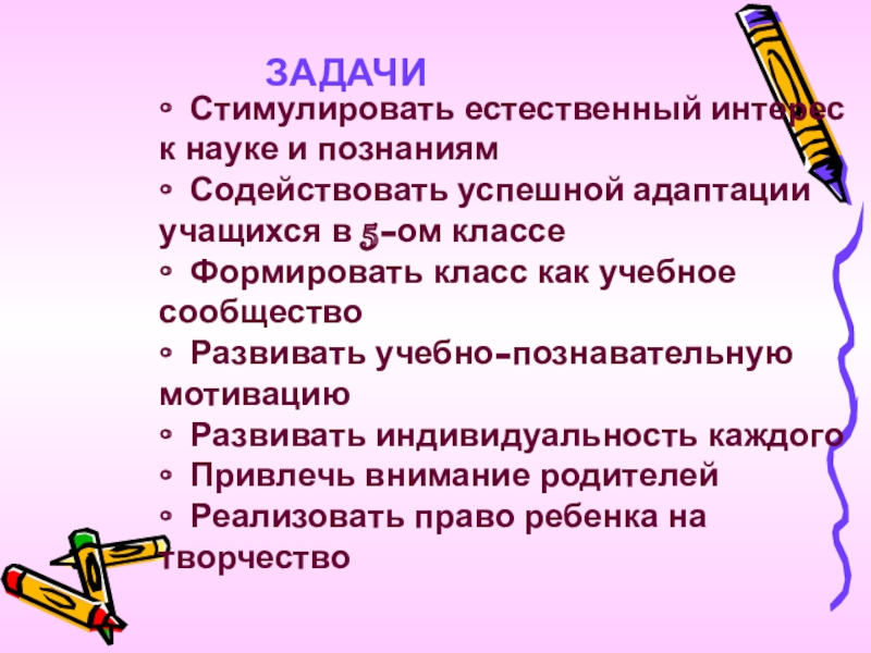 • Содействовать успешной адаптации учащихся