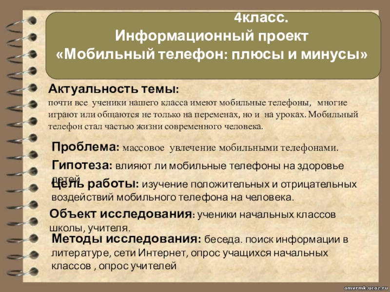 4класс. Информационный проект «Мобильный телефон: плюсы и минусы»