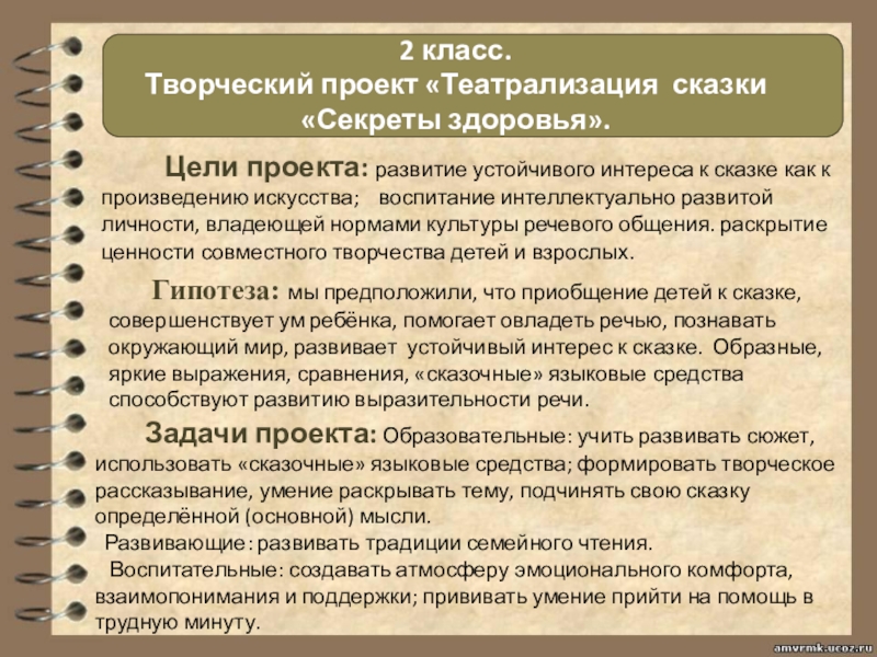 2 класс. Творческий проект «Театрализация сказки «Секреты здоровья».