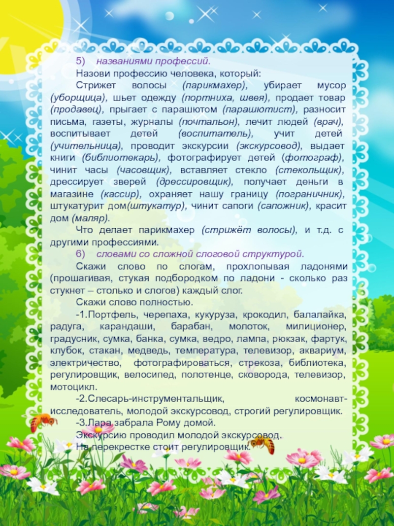 6) словами со сложной слоговой структурой.