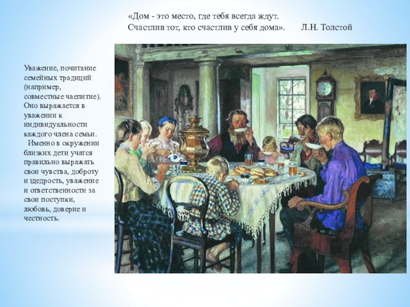 Уважение, почитание семейных традиций (например, совместные чаепитие).