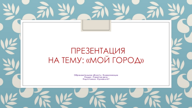 Презентация НА ТЕМУ: «МОЙ Город»Образовательная область : КоммуникацияРаздел : Развитие речи Подготовила : Кулиева А.Т