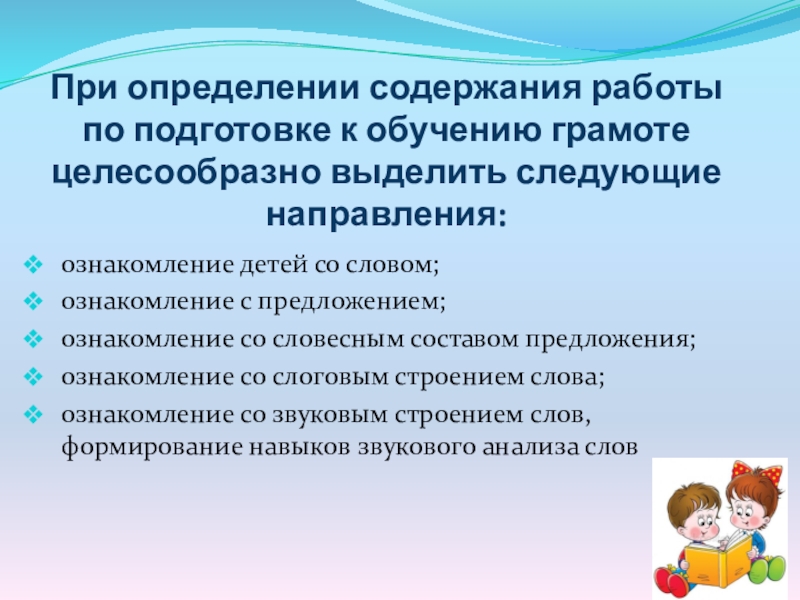 ознакомление со звуковым строением слов, формирование навыков звукового анализа слов