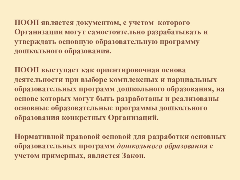 Слайд 3ПООП является документом, с учетом которого Организации могут самостоятельно разрабатывать и