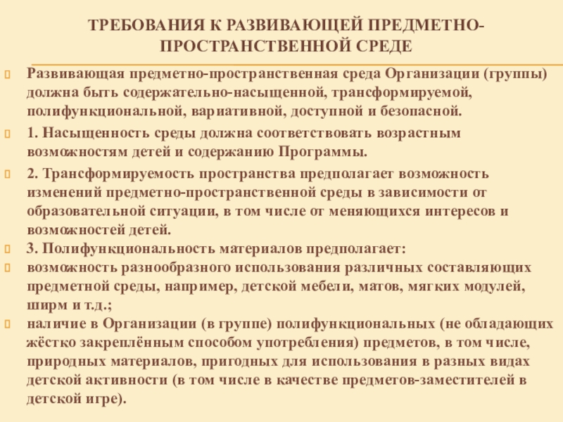 Слайд 16ТРЕБОВАНИЯ К РАЗВИВАЮЩЕЙ ПРЕДМЕТНО-ПРОСТРАНСТВЕННОЙ СРЕДЕ