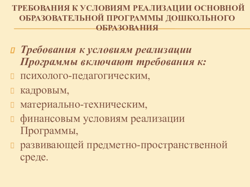 Слайд 14ТРЕБОВАНИЯ К УСЛОВИЯМ РЕАЛИЗАЦИИ ОСНОВНОЙ ОБРАЗОВАТЕЛЬНОЙ ПРОГРАММЫ ДОШКОЛЬНОГО ОБРАЗОВАНИЯ