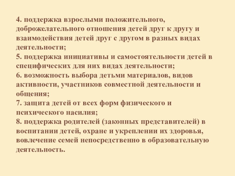 Слайд 194. поддержка взрослыми положительного, доброжелательного отношения детей друг к другу и
