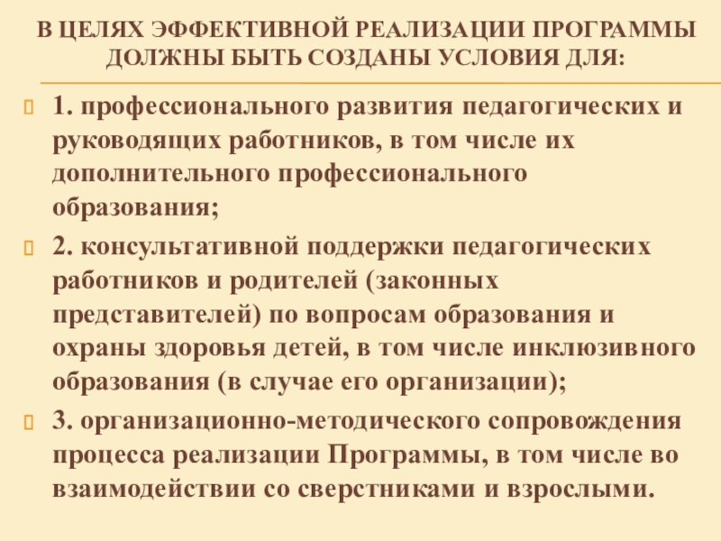 Слайд 20В ЦЕЛЯХ ЭФФЕКТИВНОЙ РЕАЛИЗАЦИИ ПРОГРАММЫ ДОЛЖНЫ БЫТЬ СОЗДАНЫ УСЛОВИЯ ДЛЯ: