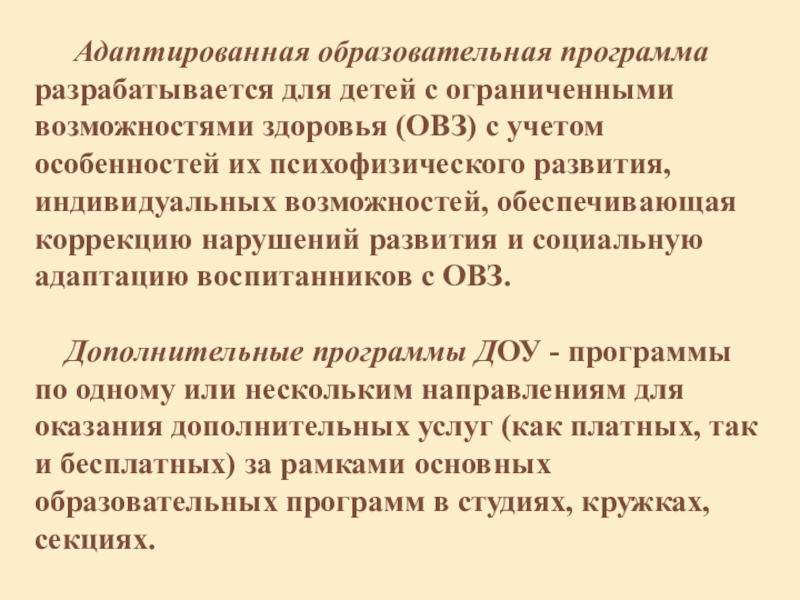 Слайд 6 Адаптированная образовательная программа разрабатывается для детей с ограниченными