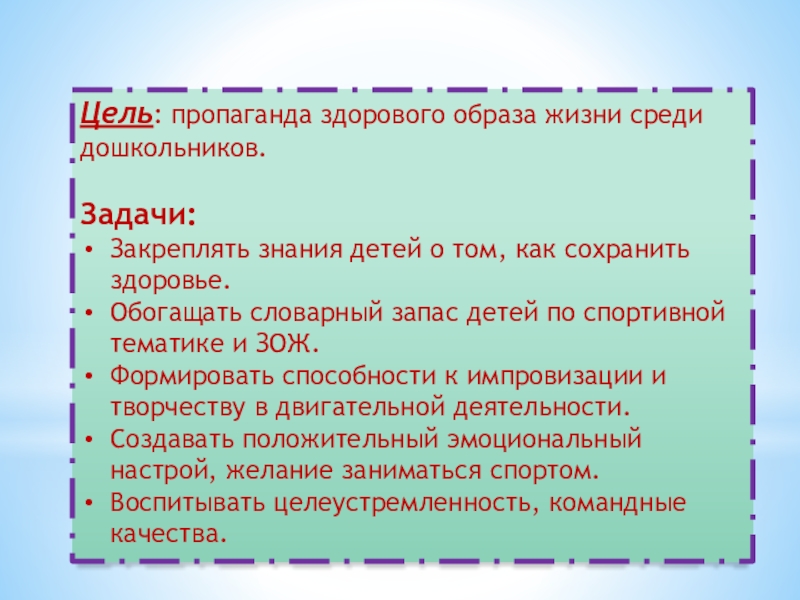 Обогащать словарный запас детей по спортивной тематике и ЗОЖ.