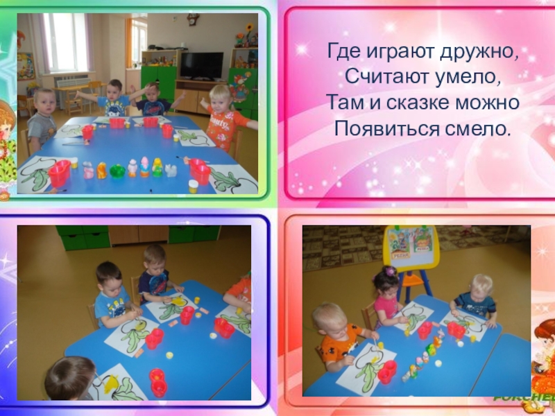 Слайд 5Где играют дружно, Считают умело, Там и сказке можно Появиться смело.