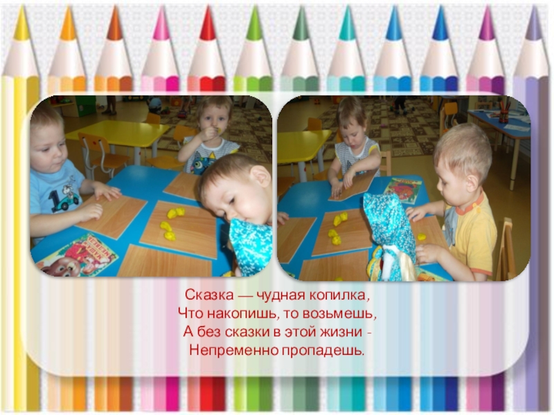 Сказка — чудная копилка, Что накопишь, то возьмешь, А без сказки в этой жизни - Непременно пропадешь.