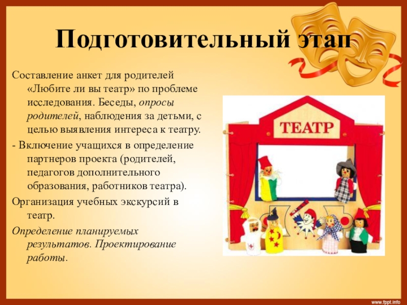 Слайд 9Составление анкет для родителей «Любите ли вы театр» по проблеме исследования.