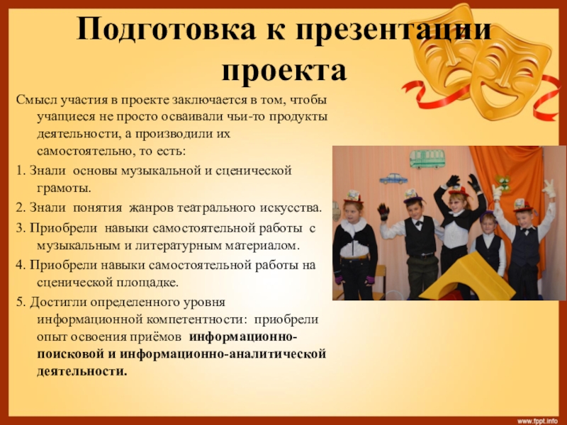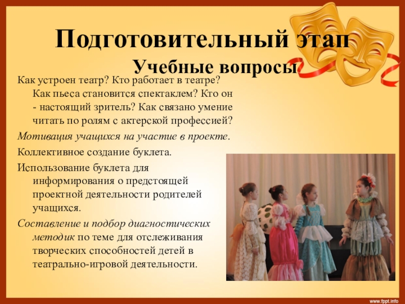 - Включение учащихся в определение партнеров проекта (родителей, педагогов дополнительного образования, работников театра).