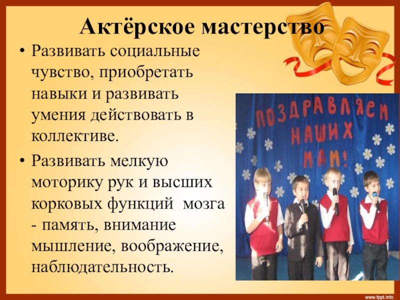 Слайд 20Актёрское мастерство