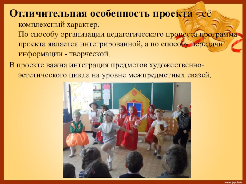 Слайд 6Отличительная особенность проекта - её комплексный характер.