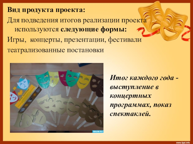 Слайд 13Вид продукта проекта: