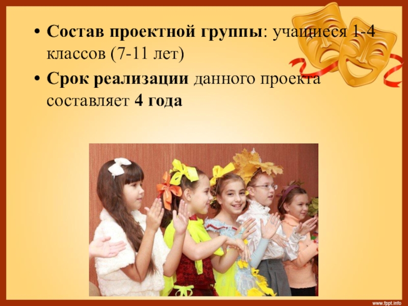 Слайд 7Состав проектной группы: учащиеся 1-4 классов (7-11 лет)