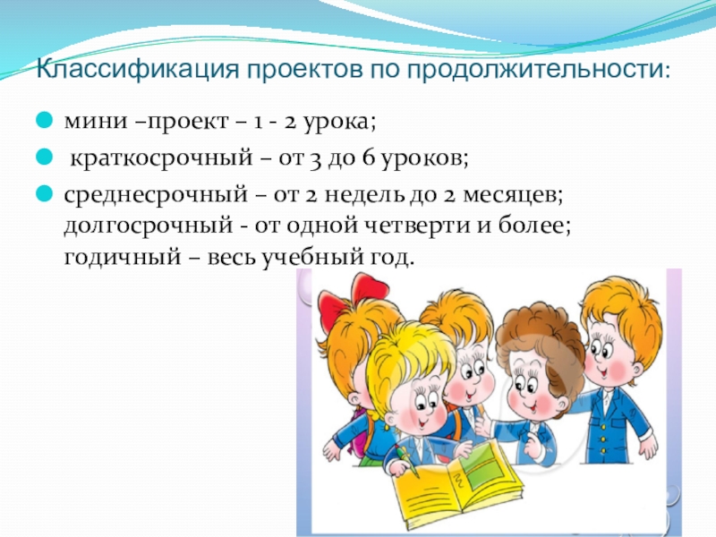среднесрочный – от 2 недель до 2 месяцев; долгосрочный - от одной четверти и более; годичный – весь учебный год.