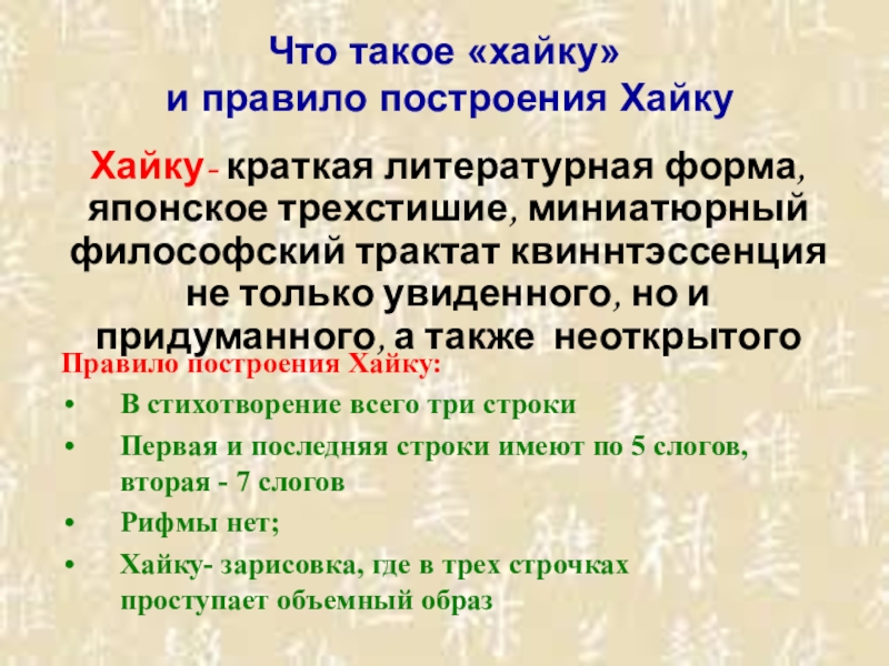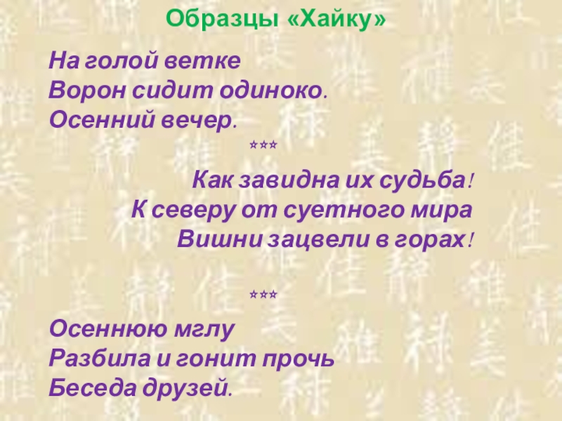 Хайку- зарисовка, где в трех строчках проступает объемный образ