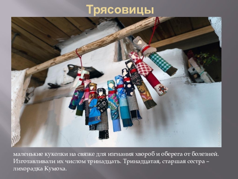 Трясовицы маленькие куколки на связке для изгнания хвороб и оберега от болезней. Изготавливали их числом тринадцать. Тринадцатая,