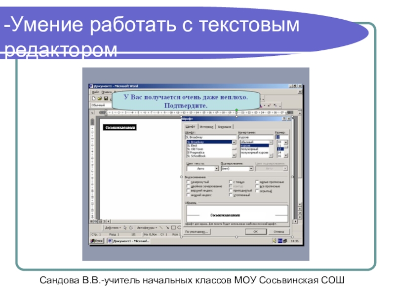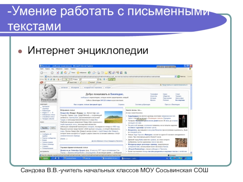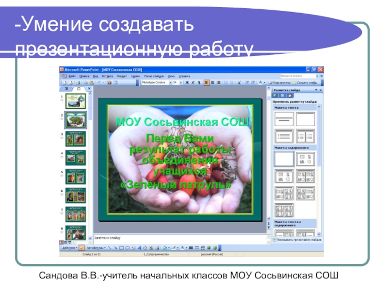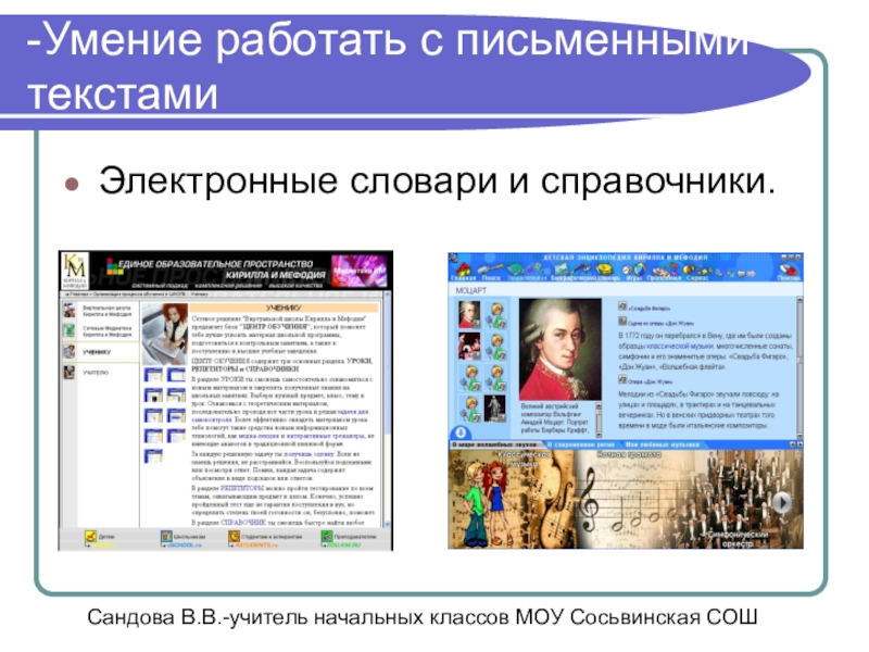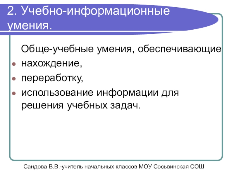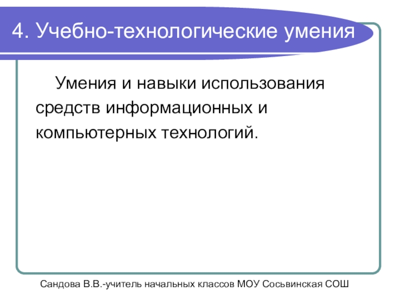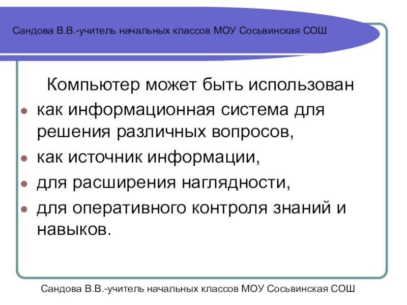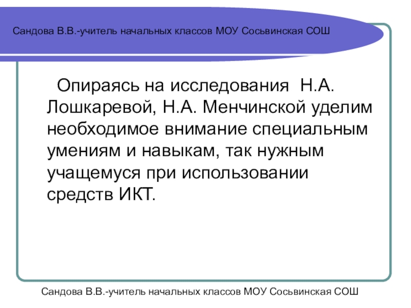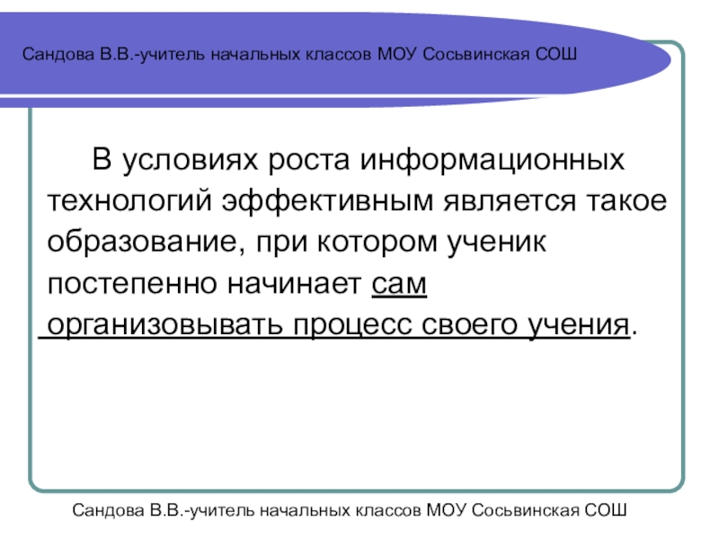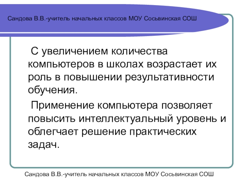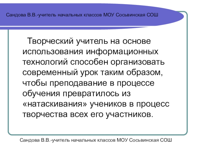 Сандова В.В.-учитель начальных классов МОУ Сосьвинская СОШ