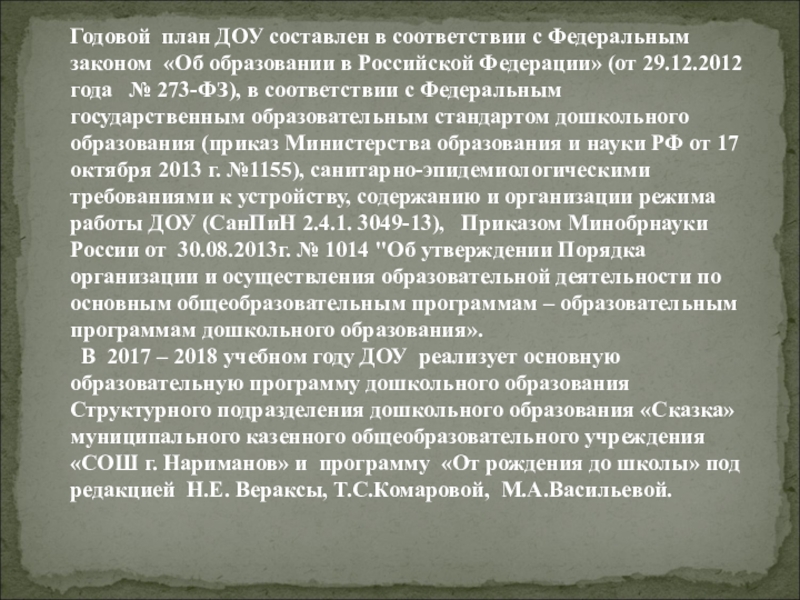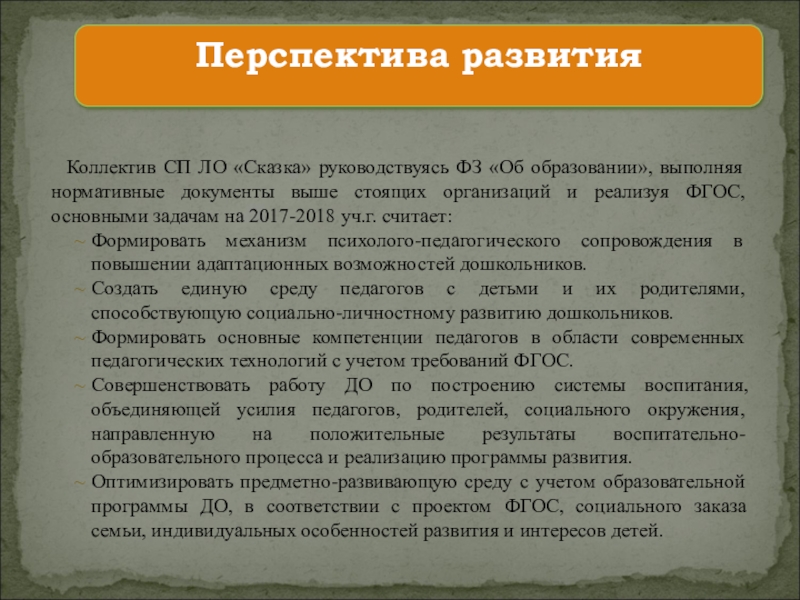 Коллектив СП ЛО «Сказка» руководствуясь ФЗ «Об образовании», выполняя нормативные