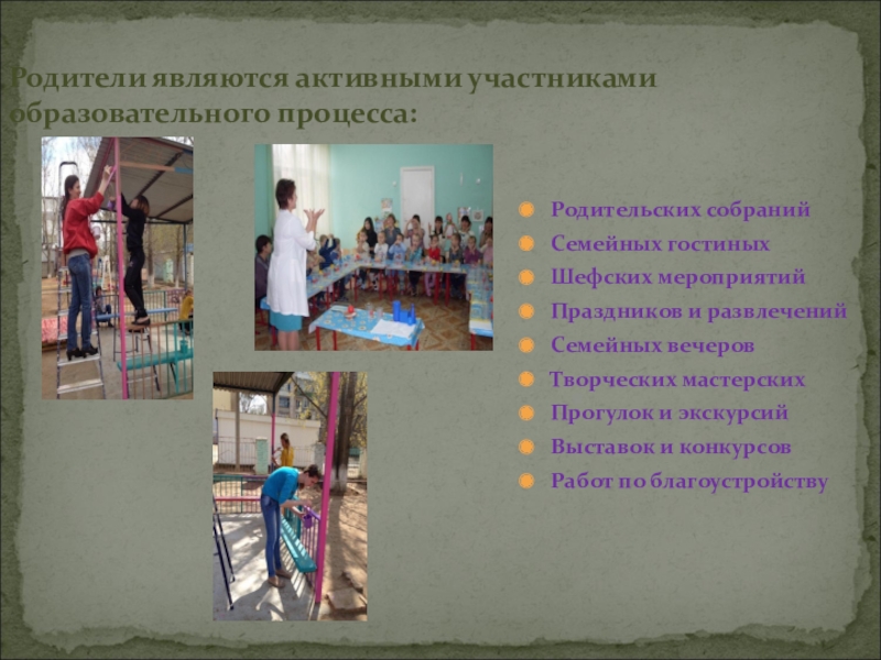 Родители являются активными участниками образовательного процесса: