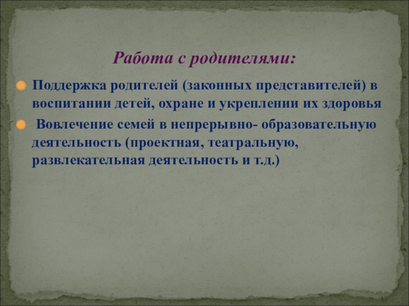 Слайд 68Поддержка родителей (законных представителей) в воспитании детей, охране и укреплении их