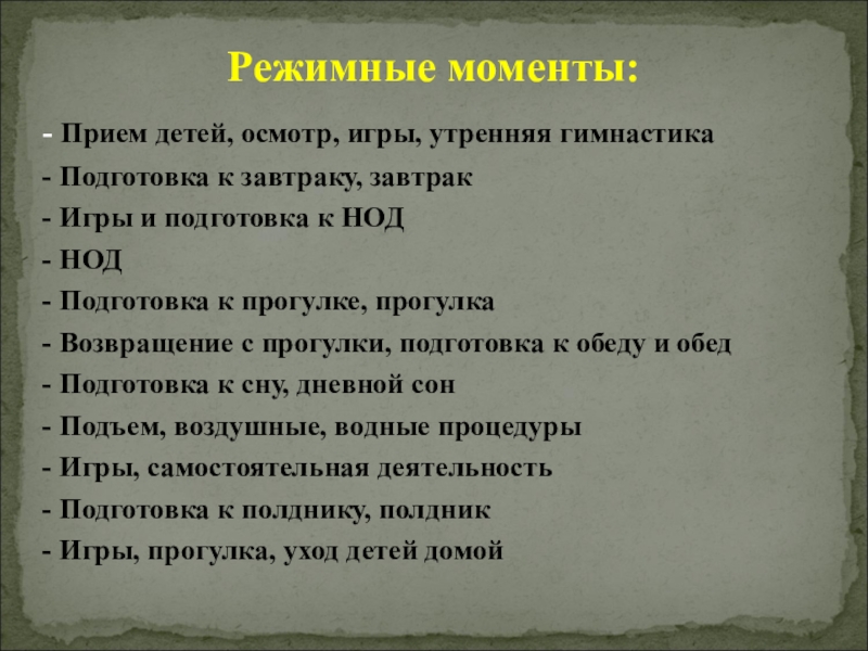 Слайд 6- Прием детей, осмотр, игры, утренняя гимнастика
