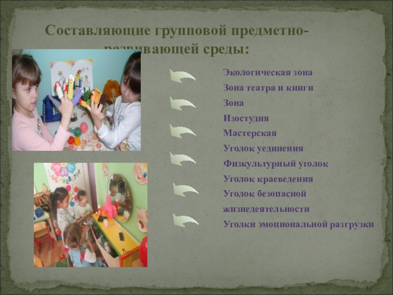Оптимизировать предметно-развивающую среду с учетом образовательной программы ДО, в соответствии с проектом ФГОС, социального заказа семьи, индивидуальных особенностей развития и интересов детей.