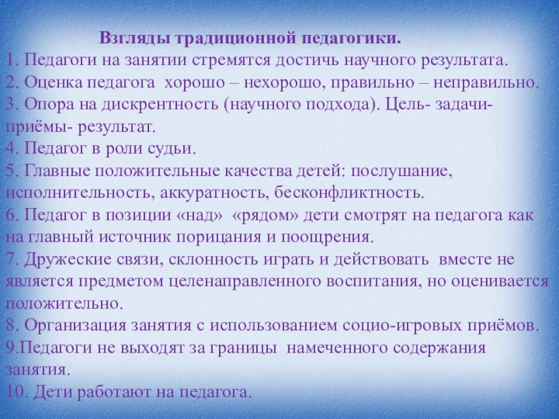 Взгляды традиционной педагогики.1. Педагоги на занятии стремятся
