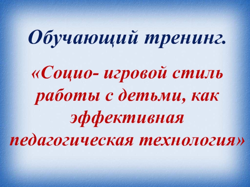 Презентация, доклад на тему Обучающий тренинг Социо - игровой стиль работы с детьми, как эффективная педагогическая технология