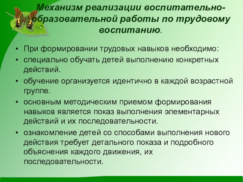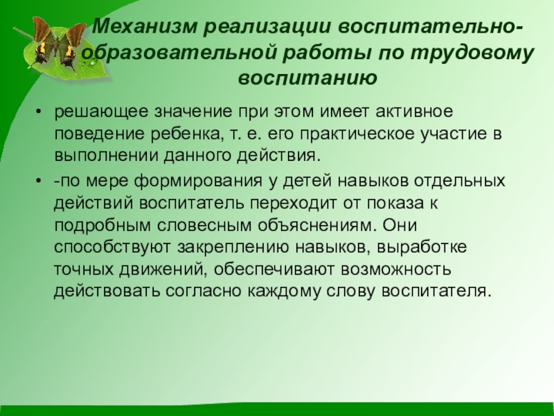 Механизм реализации воспитательно-образовательной работы по трудовому воспитанию.