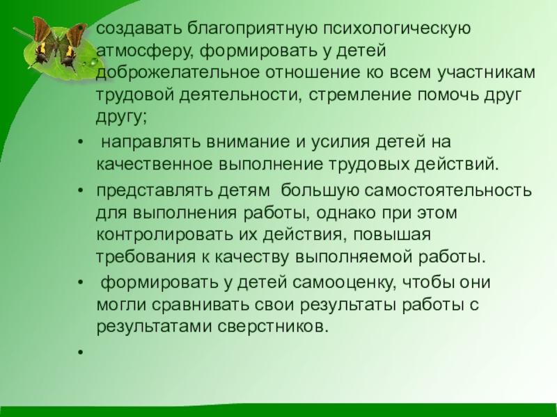 направлять внимание и усилия детей на качественное выполнение трудовых действий.