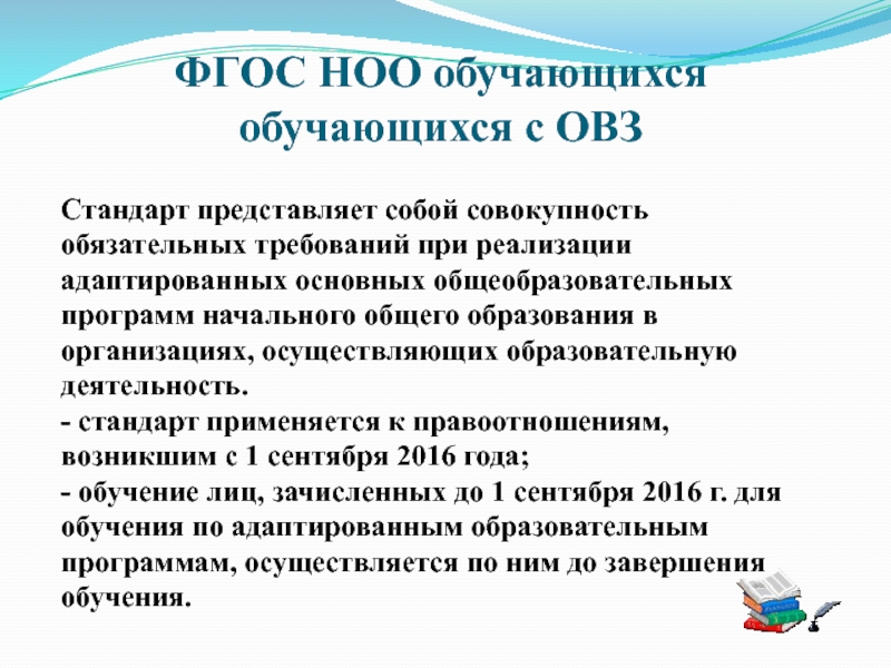 Слайд 1 Обучение детей с ОВЗ в условиях введения ФГОС