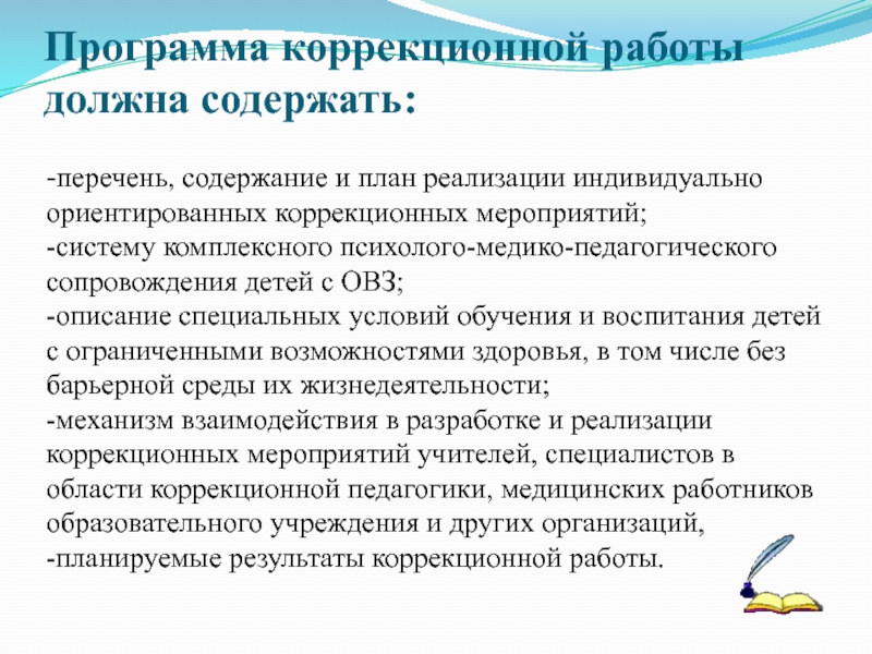 Слайд 7Программа коррекционной работы должна содержать: